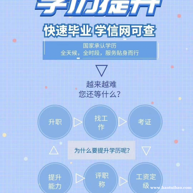 “考研梦”、“留学梦”,很多人都会有这样的想法,在进入到工作当中,还是保留这个初心,同时也是自我增值、自我提升。但考研留学很多都需要有本科以上学历,这是一道门槛,必须跨过才可以继续前进 联系我时,请说是在好推宝看到的,谢谢!